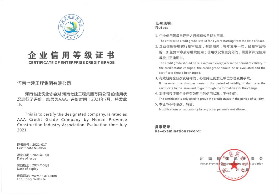 河南省AAA 企業(yè)信用等級(jí)證書(shū)202
