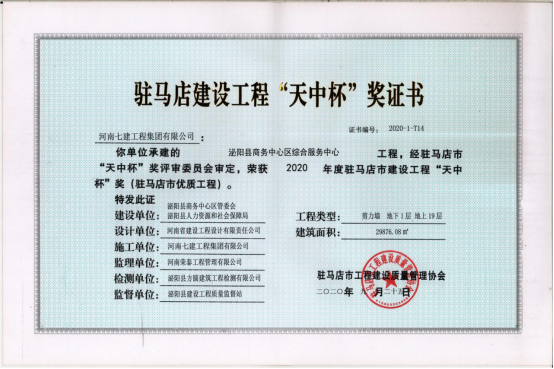 集團(tuán)公司承建項(xiàng)目榮獲“天中杯 ”獎