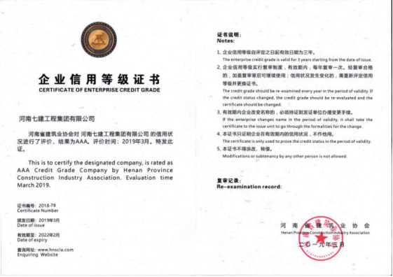 河南七建工程集團(tuán)有限公司被評為“河南省建筑業(yè)AAA級信用企業(yè)”