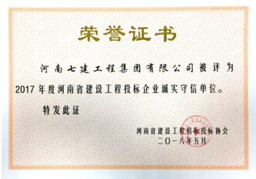 集團公司榮獲年度投標企業誠實守信單位