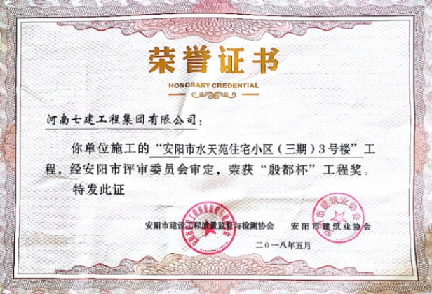 集團公司承建項目榮獲“殷都杯”工程獎