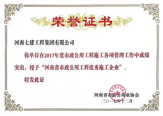 集團公司榮獲“河南省市政公用工程優秀施工企業”等多項榮譽