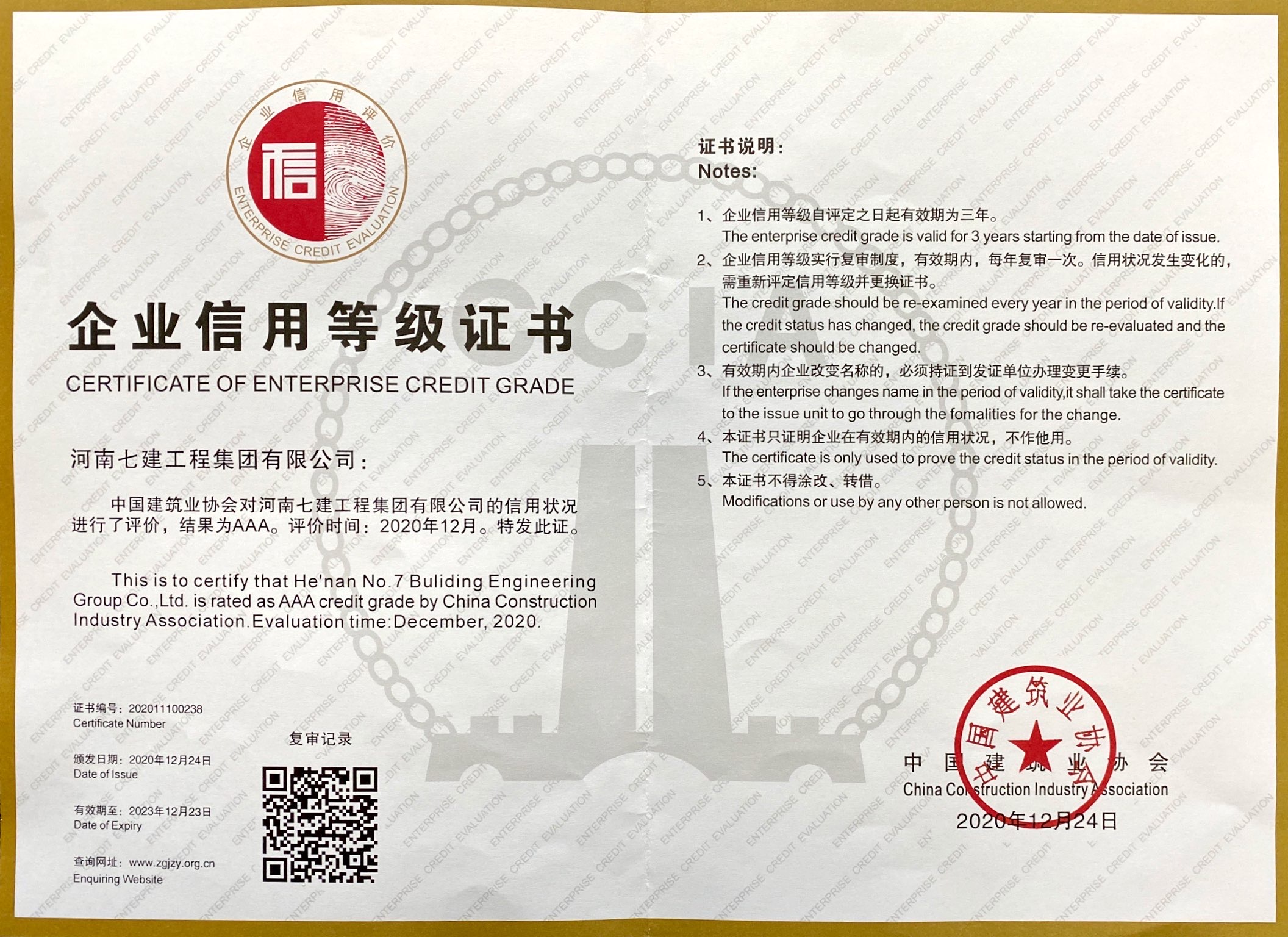 2020年度12星信用星級證書