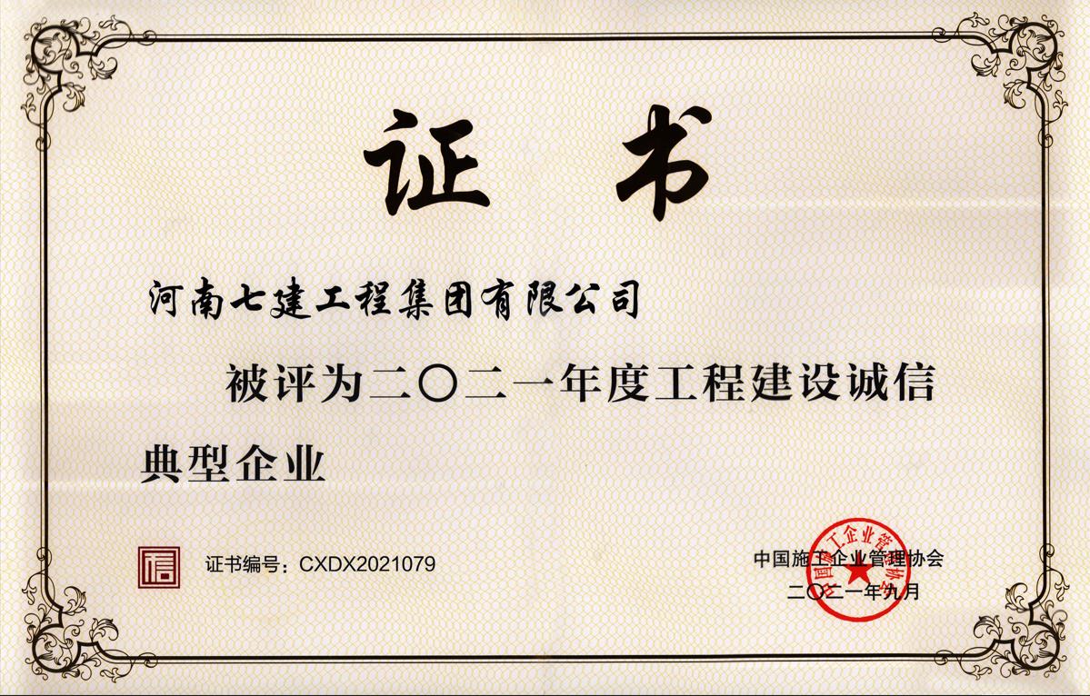 2021年度集團被評為誠信典型企